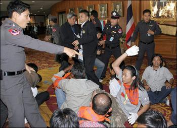 據(jù)新加坡《聯(lián)合早報(bào)》報(bào)道,由前參議員宗黃帕功帶領(lǐng)的1500名工會(huì)分子、學(xué)生和政治活躍人士闖入國(guó)會(huì)大廈,其中百約人趁保安人員沒留意,溜進(jìn)大廈直闖會(huì)議廳,導(dǎo)致開會(huì)的議員不得不休會(huì)。示威者說,隨著大選即將在兩周后(23日)舉行,現(xiàn)任國(guó)會(huì)已經(jīng)無權(quán)立法。