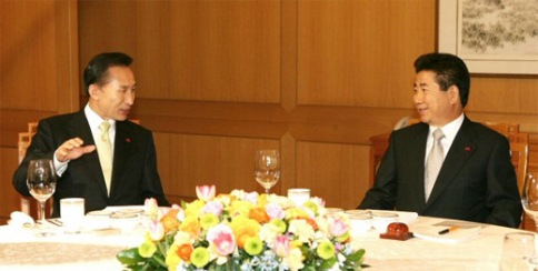 盧武鉉李明博共進(jìn)晚餐 討論政權(quán)交接等問(wèn)題(圖)