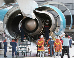 引擎起火的越南航空公司波音777客機(jī)。(共同社)