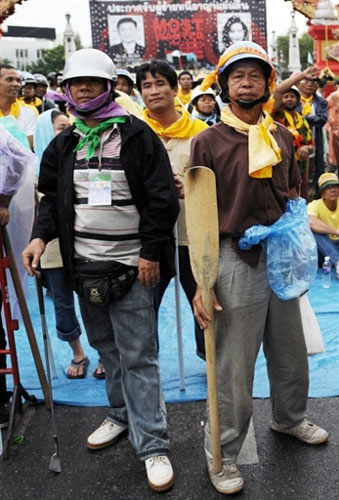 二日凌晨,數(shù)千名政府支持者從曼谷王家田廣場(chǎng)向被反政府的人民民主聯(lián)盟占領(lǐng)的總理府進(jìn)發(fā),在途經(jīng)反政府示威者設(shè)在馬卡萬(wàn)橋的集會(huì)點(diǎn)時(shí),雙方發(fā)生激烈沖突,沖突造成一人死亡,四十三人受傷。