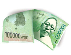韓國政府原計劃于明年年初發(fā)行的10萬韓元面值的紙幣。