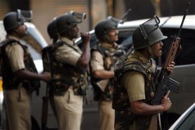 全副武裝的印度警察。