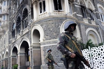 11月30日,印度軍警在泰姬瑪哈酒店外巡邏。
