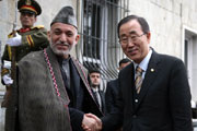 潘基文與卡爾扎伊討論了阿富汗的安全局勢(shì)、社會(huì)經(jīng)濟(jì)發(fā)展以及今年將舉行的選舉等問題。