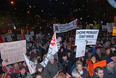 中新網(wǎng)11月18日電 2000多名來自捷克各地的民眾和歐洲其它國(guó)家反戰(zhàn)組織的代表11月17日冒著蒙蒙雨雪在首都布拉格舉行集會(huì)和游行,反對(duì)美國(guó)在捷克建立中歐導(dǎo)彈防御系統(tǒng)的雷達(dá)基地。(黃頻)
