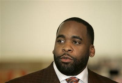 3月18日,底特律市長基爾派瑞克在新聞發(fā)布會上。