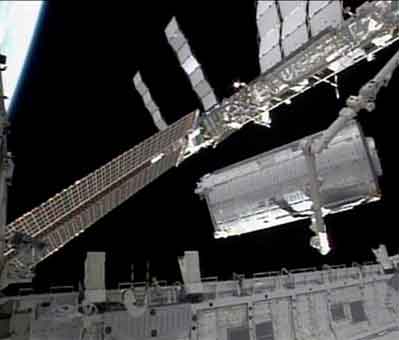 包括日本宇航員星出彰彥在內的多名宇航員使用機械臂使太空艙就位,之前還有宇航員進行了幾個小時的太空行走,為對接作準備!鞍l(fā)現(xiàn)號”航天飛機經過兩天的飛行于周一與國際空間站對接。
