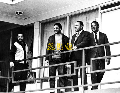 馬丁路德金(右二)1968年在孟菲斯這間旅館的露臺(tái)被槍殺。