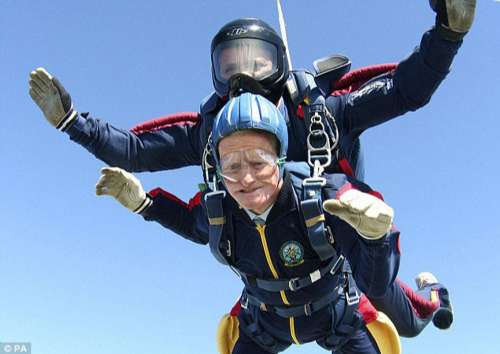 英國《每日電訊報》網(wǎng)站報道,這位勇于冒險的老人名為喬治-莫伊斯,來自多塞特郡。為慶祝自己將于本月八日到來的九十八歲生日,他在跳傘顧問的協(xié)助下乘飛機從威爾特郡一機場上空跳下,并平安返回地面。