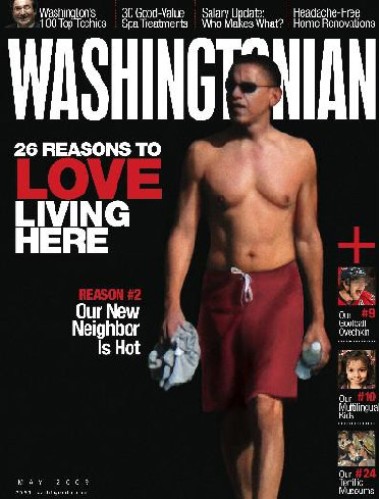《華盛頓人》雜志政治記者Garrett Graff說,讀者一看到5月號的封面之后,各種評論和意見就蜂擁而至。這張封面照片是奧巴馬僅穿著一條游泳褲,帶著墨鏡,上身赤裸。旁邊標題寫著:“我們的新鄰居很火辣”(Our new neighbor is hot)。