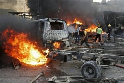 遇襲市集位于巴格達(dá)南部一個(gè)什葉派小區(qū)。該市集受到汽車炸彈襲擊后,引起大火,多部汽車亦起火。