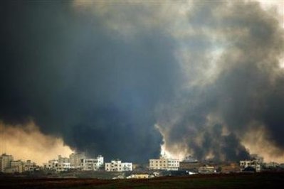 以色列空軍說,以軍飛機(jī)在夜間共發(fā)動60多次空襲,攻擊重點(diǎn)集中在靠近埃及邊境被用來偷運(yùn)武器的地道。在加沙城郊街頭,以軍部隊與哈馬斯民兵展開激戰(zhàn),報道說當(dāng)?shù)赜屑ち业臋C(jī)槍聲。