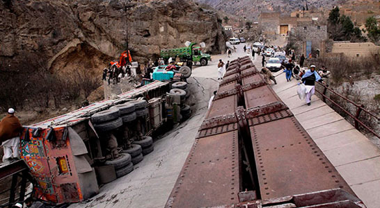 武裝分子多用火箭筒或者沖鋒槍來偷襲毫無自衛(wèi)能力的普通大貨車,很多卡車司機(jī)因此拒絕為北約盟軍運(yùn)送后勤物資。去年12月,白沙瓦附近的貨場(chǎng)遭塔利班襲擊,共有300多輛大貨車被燒毀。由于這條補(bǔ)給線常遭塔利班襲擊,美國(guó)和北約希望能開辟?gòu)闹衼嗊M(jìn)入阿富汗的北線來運(yùn)輸燃料和食品等物資。