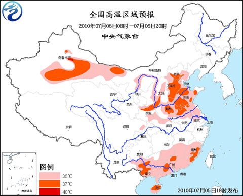 中央氣象臺7月5日18時繼續(xù)發(fā)布高溫黃色預(yù)警: