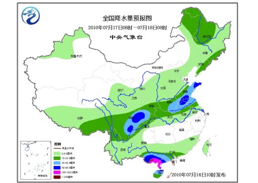 15-19日,淮河流域將出現一次明顯降雨過程,部分地區(qū)有暴雨,局部有大暴雨,強降雨將主要出現在16-17日。過程降雨量一般有50-120毫米,部分地區(qū)有150-200毫米、局部300毫米左右。20日之后,淮河流域將轉為高溫少雨天氣。