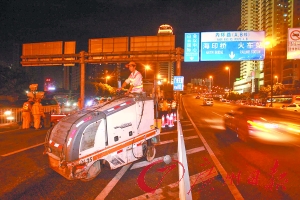 本報(bào)訊(記者倪明、王鶴)從昨日22時(shí)開始,內(nèi)環(huán)路南田路入口至江灣橋南出口,黃埔大道放射線出口段兩處路段約4公里全封閉施工,施工單位將趁著周末和單雙號限行,交通量相對較少的機(jī)會(huì)24小時(shí)刨鋪瀝青,爭取在下周一白天重新開放封閉路段。昨晚10時(shí)07分,記者驅(qū)車前往南田路入口,只見電子提示牌上已閃現(xiàn)封閉通知,沿路可見懸掛的車輛繞行指引提示牌。在現(xiàn)場交警的指揮下,交通秩序尚好。交警人士透露,大修啟動(dòng)后,馬上迎來單雙號演練,對交通影響不大,但單雙號演練結(jié)束后,廣州交通將面臨考驗(yàn)。