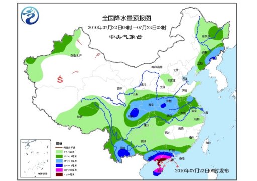 22日08時(shí)至23日08時(shí),新疆西部、青海南部、西藏中東部、西北地區(qū)東南部、山西東北部和南部、東北大部、黃淮西部和南部、江淮、江漢、江南北部和西部、華南、西南地區(qū)等地有小到中雨或陣雨,其中,遼寧東北部、吉林東部、四川盆地北部、甘肅東南部、陜西南部、河南大部、湖北北部、江蘇北部、云南中南部、廣西中南部、廣東中西部、海南等地有大雨或暴雨,廣東西南部、廣西東南部、海南中北部的局部有大暴雨或特大暴雨;上述地區(qū)局地并伴有短時(shí)雷雨大風(fēng)等強(qiáng)對(duì)流天氣。新疆東部、內(nèi)蒙古西部等地有4~6級(jí)風(fēng)。受臺(tái)風(fēng)“燦都”的影響,南海西部海域、瓊州海峽、北部灣海域?qū)⒂?~10級(jí)大風(fēng),“燦都”中心經(jīng)過(guò)的附近海面將有11~12級(jí)大風(fēng),陣風(fēng)可達(dá)13~14級(jí)。南海東北部海域?qū)⒂?~7級(jí)東南風(fēng)。