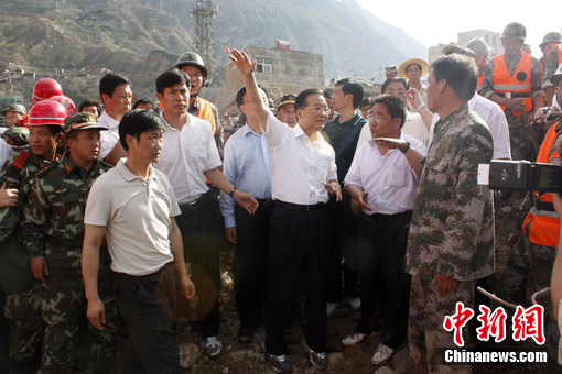 8日凌晨,甘肅省舟曲縣因強(qiáng)降雨引發(fā)滑坡泥石流,造成重大人員傷亡,電力、交通、通訊中斷。溫家寶于當(dāng)日中午乘專機(jī)趕赴甘肅,途中在天水機(jī)場換乘直升機(jī)后輾轉(zhuǎn)前往舟曲縣。