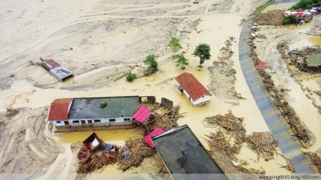 8月12日22時30分左右,綿竹市清平鄉(xiāng)境內(nèi)發(fā)生強降雨,在地震中被山體掩埋的王家溝突發(fā)特大泥石流,將綿遠河堵塞,造成河水改道,將位于河道下游約1公里處的清平鄉(xiāng)部分場鎮(zhèn)淹沒,大量群眾被洪水圍困。