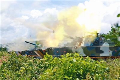 旅長陳衛(wèi)東向筆者介紹了此次訓練的意義:“未來島礁作戰(zhàn)強度高、節(jié)奏快,新型兩棲自行火炮快反射擊訓練,改變了以往傳統(tǒng)的指揮和攻擊模式,大大縮短了反應時間,提高了射擊精度,大大接近了‘發(fā)現(xiàn)即摧毀’的戰(zhàn)斗目標!(余文強 曾慶)