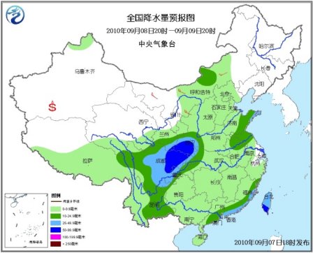 8日20時至9日20時,青海南部、西藏中東部、西北地區(qū)東部、內(nèi)蒙古中部、華北大部、黃淮、江淮、江漢、江南大部、華南、西南等地有小到中雨或陣雨,其中山東東部、四川中東部、重慶西部、甘肅東南部、陜西南部、福建中南部沿海、廣東中東部沿海、臺灣等地有大雨或暴雨;上述部分地區(qū)并伴有短時雷雨大風等強對流天氣。內(nèi)蒙古中西部有4~6級風;南疆盆地的部分地區(qū)有揚沙或浮塵天氣。東海南部海域有5~7級東南風;臺灣海峽、南海東北部海域、臺灣以南海域有6~8級大風;臺灣以東洋面有5~7級偏南風。另外,黃海北部和中部海域?qū)⒂?~7級旋轉(zhuǎn)風。