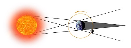 月食的過程和日食的過程有些不同。月球自西向東運(yùn)動,它在東邊緣先接觸地影,因此月食總是從月輪的東邊緣開始。與日全食一樣,月全食分為相同的5個(gè)階段(初虧、食即、食甚、生光、復(fù)圓),從食即到生光的全食時(shí)間長達(dá)1小時(shí)以上。朝向月球的半個(gè)地球上見到的月食的時(shí)刻和情況完全一樣,正如舞臺上的燈泡漸暗至熄滅的過程,對于劇場內(nèi)的所有觀眾都是一樣,并且會同時(shí)看到。