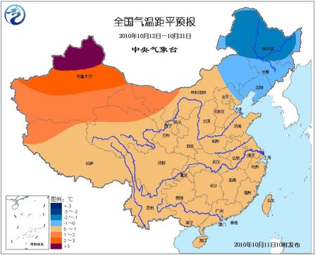 中新網(wǎng)10月11日電 據(jù)中央氣象臺預報,未來10天,影響中國的冷空氣較為頻繁,北方地區(qū)冷暖變化較大,南方地區(qū)氣溫變化較平穩(wěn)。新疆、甘肅西部、內蒙古西部地區(qū)平均氣溫比常年同期偏高1-2℃,內蒙古東北部、東北地區(qū)中北部比常年同期偏低1-2℃,中國其余大部地區(qū)氣溫接近常年同期。