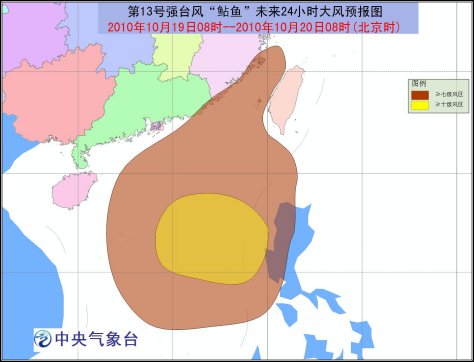 受“鲇魚”和冷空氣的共同影響,19日08時至20日08時,臺灣海峽、巴士海峽、巴林塘海峽、南海大部、福建沿海、廣東東部沿海將有7-9級大風(fēng),陣風(fēng)可達(dá)10-12級,其中南海東北部和中部偏東海域?qū)⒂?0-12級大風(fēng),陣風(fēng)可達(dá)13-14級,“鲇魚”中心經(jīng)過的附近海面風(fēng)力有13-16級,陣風(fēng)可達(dá)17級以上;臺灣東部地區(qū)將有大到暴雨,局部地區(qū)將有大暴雨。
