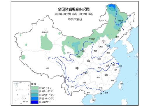 未來三天,冷空氣的勢力還將繼續(xù)向南推進(jìn)。中央氣象臺今天6時繼續(xù)發(fā)布寒潮藍(lán)色預(yù)警。預(yù)計,24日8時至26日8時,甘肅大部、青海北部、寧夏、陜西、內(nèi)蒙古南部、東北、華北、黃淮、江淮、江漢、江南北部、四川盆地東部、重慶、貴州北部等地將出現(xiàn)6~12℃降溫,其中,內(nèi)蒙古東南部、河北大部、東北大部、山東、江蘇北部等地的部分地區(qū)降溫幅度可達(dá)14~16℃;上述大部地區(qū)并伴有4~6級偏北風(fēng)。內(nèi)蒙古南部和東北部、甘肅中東部、青海、寧夏、華北北部、黑龍江、吉林等地將有小到中雨轉(zhuǎn)雨夾雪或小到中雪,局地有大雪。