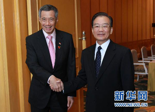 國務(wù)院總理溫家寶29日在河內(nèi)會(huì)見了新加坡總理李顯龍。