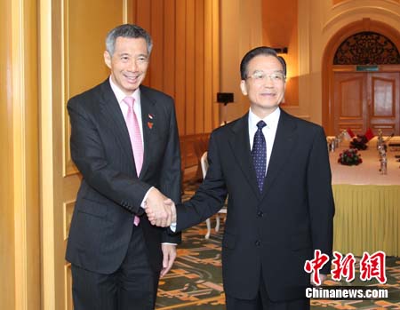 中新網(wǎng)河內10月29日電 (記者 張朔)中國總理溫家寶29日在河內會見新加坡總理李顯龍。