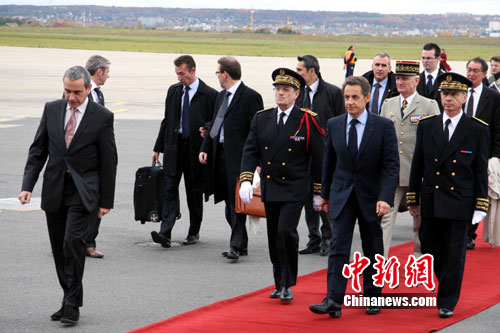 抵達巴黎 薩科齊夫婦破例到機場迎接(3)