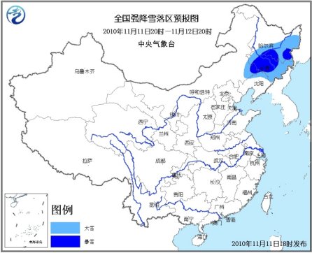 中新網(wǎng)11月11日電 中央氣象臺11月11日18時發(fā)布今冬首個暴雪藍(lán)色預(yù)警: