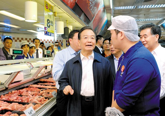溫家寶邊看邊問(wèn),了解物價(jià)變化對(duì)市民生活的影響。他說(shuō),市場(chǎng)供求和物價(jià)關(guān)系群眾的切身利益,必須高度重視。國(guó)務(wù)院正在擬定措施,抑制價(jià)格過(guò)快上漲。他叮囑廣州市有關(guān)負(fù)責(zé)人要千方百計(jì)保持供貨渠道暢通,保證市場(chǎng)供應(yīng),加強(qiáng)監(jiān)管,維護(hù)市場(chǎng)秩序。