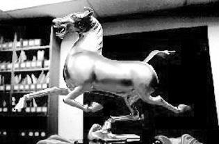 2002年,江澤民將一尊原大仿制24K鍍金青銅仿制品“馬踏飛燕”,贈與美國總統(tǒng)喬治·沃克·布什。資料圖片