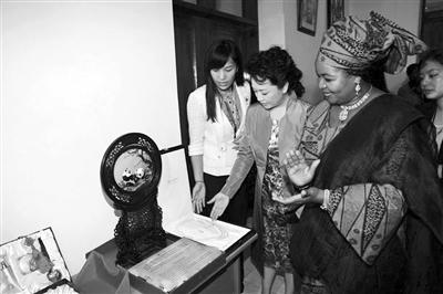 參觀坦桑尼亞婦女與發(fā)展基金會時,彭麗媛送出了來自中國的品牌“阮仕珍珠”和“百雀羚”。