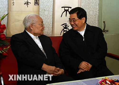 胡錦濤來(lái)到位于北京市海淀區(qū)的錢(qián)老家中。給錢(qián)老送上一只花籃。朵朵鮮花姹紫嫣紅,使屋子里春意盎然。