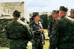 在“和平使命——2007”聯(lián)合軍演六國參演部隊演習(xí)場上,一位扎著馬尾辮的中國女少校引起俄軍官兵注目,大家都喜歡送花給她,稱她卡林娜,意思是來自中國的紅莓花。她叫董英華,新疆軍區(qū)某部副團職俄語翻譯。
