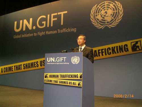 他指出,中國(guó)政府高度重視打擊人口販運(yùn)國(guó)際合作。他說(shuō),中國(guó)是《聯(lián)合國(guó)打擊跨國(guó)有組織犯罪公約》締約國(guó),切實(shí)履行公約義務(wù),并積極參與聯(lián)合國(guó)框架下打擊人口販運(yùn)國(guó)際合作!堵(lián)合國(guó)機(jī)構(gòu)間湄公河次區(qū)域合作反對(duì)拐賣人口項(xiàng)目》是區(qū)域合作解決國(guó)際人口販運(yùn)犯罪問(wèn)題的典范。2004年,中國(guó)、越南、泰國(guó)、緬甸、老撾、柬埔寨六國(guó)政府簽署了《湄公河次區(qū)域合作反對(duì)拐賣人口諒解備忘錄》。三年來(lái),六國(guó)政府信守承諾,大力加強(qiáng)預(yù)防拐賣、保護(hù)救助受害人工作,嚴(yán)厲打擊各種拐賣犯罪行為,使得眾多拐賣犯罪受害人和潛在受害者從中受益。2007年底,湄公河次區(qū)域反拐第二屆部長(zhǎng)級(jí)磋商會(huì)在中國(guó)北京成功召開(kāi),會(huì)議通過(guò)第二階段《湄公河次區(qū)域反拐行動(dòng)計(jì)劃》及《聯(lián)合宣言》等一系列重要指導(dǎo)性文件,對(duì)進(jìn)一步落實(shí)《諒解備忘錄》、促進(jìn)本區(qū)域合作打擊人口販運(yùn)犯罪工作將產(chǎn)生深遠(yuǎn)影響。