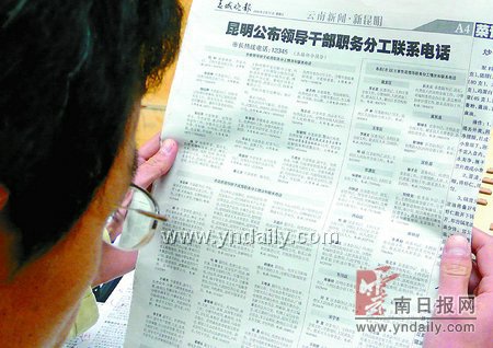 應(yīng):向社會公布領(lǐng)導(dǎo)的工作電話和職務(wù)分工情況,是加強昆明市軟環(huán)境建設(shè)的一項重要措施,是進行政務(wù)公開的一種形式,同時也是密切黨和政府與人民群眾血肉聯(lián)系的一種方式,使黨和人民群眾緊密聯(lián)系的橋梁更加鞏固。這項工作原來也開展過一些,如市長熱線電話、舉報投訴電話等,這次是統(tǒng)一起來一并公布。
