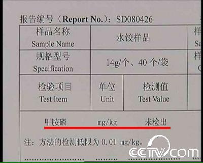 這家工廠的檢驗(yàn)記錄顯示,每一批次的蔬菜在進(jìn)廠前都會由河北檢驗(yàn)檢疫部門進(jìn)行抽檢或由企業(yè)送檢。相關(guān)的檢測結(jié)果顯示,在生產(chǎn)2007年10月1日和10月20日兩個批次的豬肉白菜餡餃子之前都進(jìn)行過相關(guān)的檢驗(yàn),洋白菜、大白菜以及韭菜、姜、蒜的檢測中都沒有檢出甲胺磷等高毒高殘留農(nóng)藥。