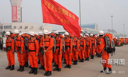 河北三百名消防官兵開赴抗震救災一線(圖)