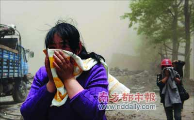 這里是縣城惟一有電和手機(jī)信號(hào)的地方,還可以使用寬帶上網(wǎng)?h城的居民們都在街道上的車上或者帳篷內(nèi)過夜。夜間有警察、武警不停巡邏,維持秩序。