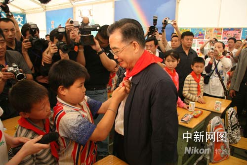 “我看到了寬敞的帳篷,你們又有了學(xué)習(xí)的地方。你們值得我們驕傲,值得中國(guó)驕傲。你們失去了父母親人,在極其悲痛的情況下,仍然不忘學(xué)習(xí)。今后生活的時(shí)間還長(zhǎng),今后要走的路還很久,你們要好好學(xué)習(xí),提高本領(lǐng)!