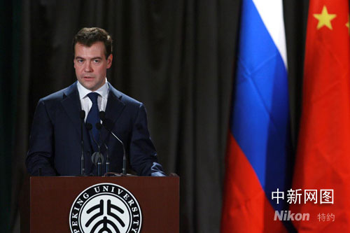 中新網(wǎng)5月24日電 俄羅斯總統(tǒng)梅德韋杰夫今天下午在北京大學(xué)發(fā)表演講時(shí)說,中俄邊界問題的解決,這是一件具有歷史意義的大事。