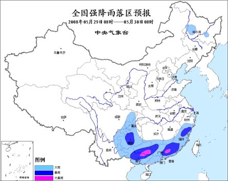 中新網(wǎng)5月29日電 據(jù)問(wèn)天網(wǎng)消息,中央氣象臺(tái)今天早晨六點(diǎn)鐘發(fā)布暴雨預(yù)報(bào):