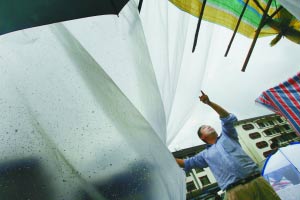 本報(bào)記者昨日上午在綿陽江油市最大的災(zāi)民安置點(diǎn)——李白故居安置點(diǎn)見到,災(zāi)民們自建的簡陋帳篷(該安置點(diǎn)基本上都是自建的)沒能抵抗住凌晨開始的暴雨,幾乎所有的帳篷都出現(xiàn)了漏雨現(xiàn)象,少量帳篷甚至倒塌。
