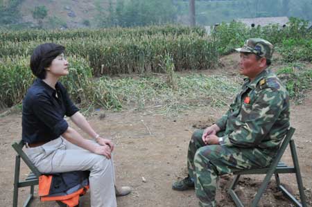 董倩演播室串場:我跟著經(jīng)大忠縣長,從設在北川中學的前線指揮部步行到北川的老縣城。在這條路上,不斷能夠迎面遇到從山里面撤出來的,受災地區(qū)的群眾。這個時候經(jīng)縣長就會撇下我走上去問,你們從哪來?要撤到哪去?家里的東西帶出來沒有,身上現(xiàn)在還缺點什么?很多人都不知道他是誰。有的人就問,你是誰?這個時候經(jīng)大忠往往不回答。我會替他回答,我說這是經(jīng)縣長,你們的縣長。有個小伙子知道他就是縣長,拍著胸脯說:“縣長你放心,我們行!蔽以谂赃呾o靜地看著,我看著縣長和普通百姓之間的這種一問一答,從中我看到了在經(jīng)歷過這場巨大的災難之后,他們之間彼此信任、信賴的這種關系。而且我也看到了,他們對于未來的那種希望。