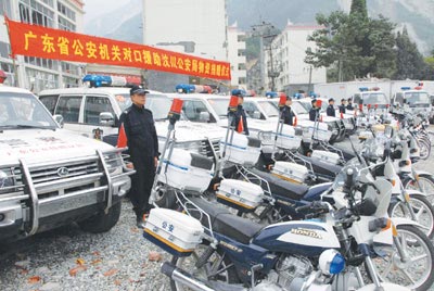 6月13日,廣東對口援助汶川大批急需警用物資抵川