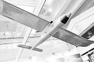 流線型的外形和扁平的機身,使“暗劍”看上去很像一款隱形戰(zhàn)機。一位內(nèi)行觀眾告訴記者,“暗劍”在氣動布局上采用硬性三角主翼搭配密切耦合前控制小翼的外形,黑色的外表則很可能大量應用了復合材料,這些都使其具備強大的隱形能力。同時,“暗劍”雙垂尾和鴨式前翼的設計則是高速高機動性作戰(zhàn)飛機的典型特征,而且左右都留有矢量運動的空間,矢量噴口結(jié)合全動前翼的設計,將使“暗劍”具有高機動性能。盡管展出的只是一個模型,但“暗劍”仍在觀眾心中掀起了層層波瀾,讓我們相信中國無人機事業(yè)一定會迎來更美好的明天。(呂德勝)